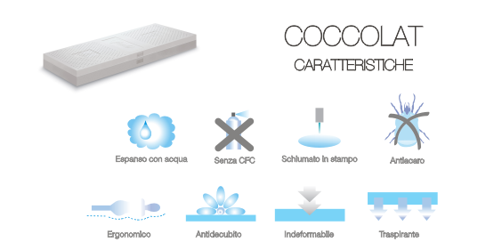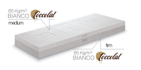 100% schiuma di cocco ultra soffice e traspirante, naturalmente elastica e fresca, leggermente profumata con essenza di cocco. Sostegno mirato con zone ad elasticità differenziata..